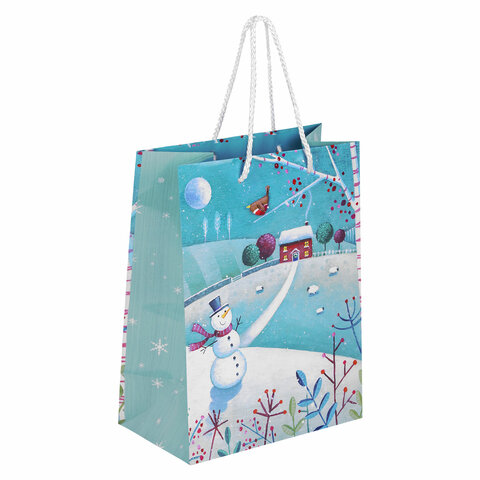 Пакет подарочный (1шт) новогодний 26х13х32см "Акварельная зима" фольга, ассорти, ЗОЛОТАЯ СКАЗКА, 592447