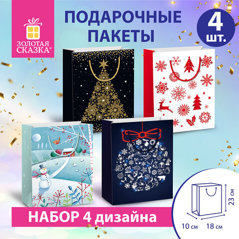 Набор новогодних подарочных пакетов "Collection Medium" ЗОЛОТАЯ СКАЗКА поможет легко и со вкусом оформить выбранный подарок.