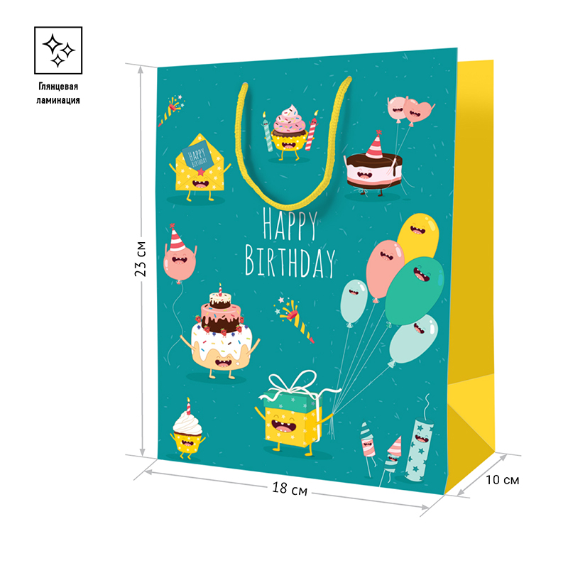 Яркий подарочный пакет ArtSpace Birthday выделит ваш презент из массы других. Оригинальный дизайн сделает подарок эффектным и запоминающимся. Размер пакета - 18*23*10 см, материал - ламинированный картон.<br/>Получать подарки всегда приятно, а красиво оформленные подарки приятнее вдвойне. Эксклюзивный дизайн, превосходное качество и множество отделок – черты, воплотившиеся в подарочных пакетах ArtSpace. <br/>Дарите подарки с любовью!<br/>• Размер: 18*23*10 см;<br/>• Ориентация: вертикальная;<br/>• Вид ручек: шнурок.