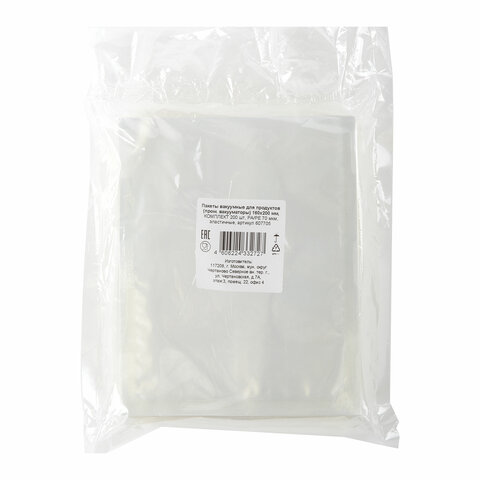 Пакеты вакуумные для продуктов 70 мкм РА/РЕ (200 штук в упаковке) надежно защищают продукты (овощи, фрукты, нарезку, мясо) от внешних воздействий на протяжении длительного времени. Имеют гладкую поверхность. НЕ ПОДХОДЯТ ДЛЯ ДОМАШНИХ ВАКУУМАТОРОВ.