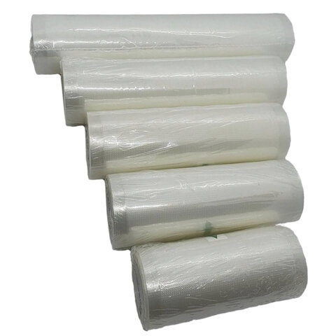 В комплекте 5 рулонов для вакуумного упаковщика, они отличаются по ширине пленки: 12/15/20/25/28 см. Благодаря чему, вы можете выбрать нужный для вас размер, не тратя лишнюю пленку и сохраняя место. Вы также можете выбрать длину пакета, для использования необходимо отрезать пленку и запаять край с помощью вакууматора.