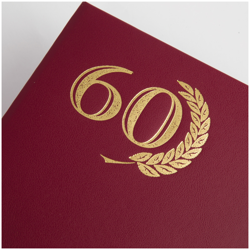 Папка адресная OfficeSpace серии «60 лет» формата А4 идеально подойдёт для поздравления с юбилеем. Изделие выполнено из прочного картона красного цвета с покрытием из бумвинила. Обложка изделия украшена тиснением из фольги. Внутренний способ крепления документов – лента-ляссе. Папка выпускается в индивидуальной упаковке.