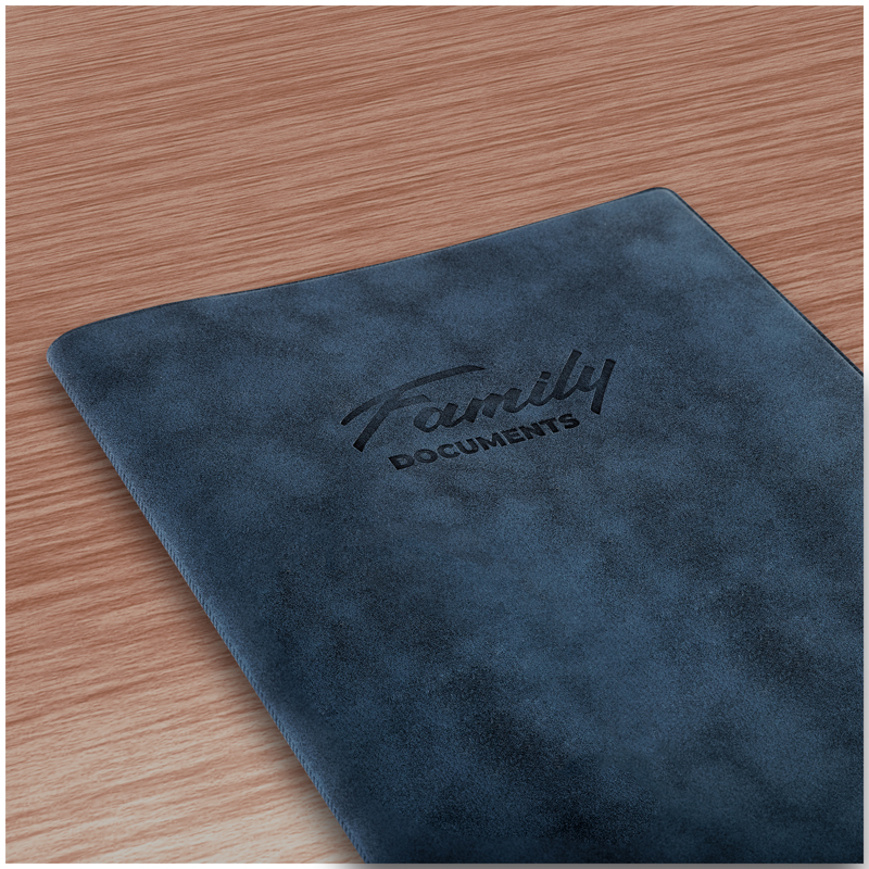 Папка для хранения личных документов семьи. Рассчитана на четыре персоны разных годов рождения. Предусмотрены отделения для всех видов документов (старого и нового образцов, карточек и др).<br/>Конфигурация папки: 4 клапана для паспорта, 4 клапана для СНИЛС/СТС, 4 клапана для прав/пластикового полиса, 2 клапана А5 (св-во о рождении старого образца), 3 листа/6 клапанов для документов А4.