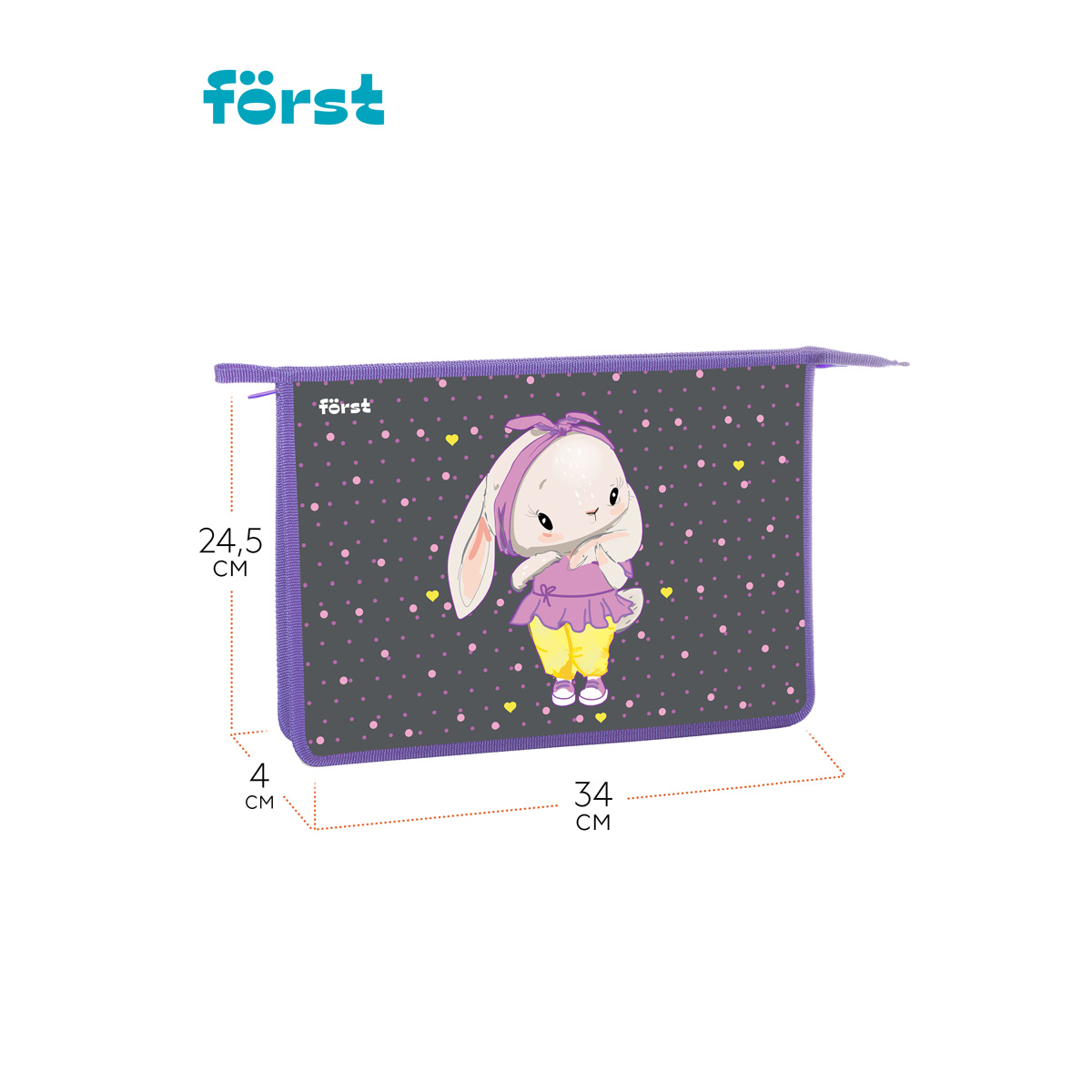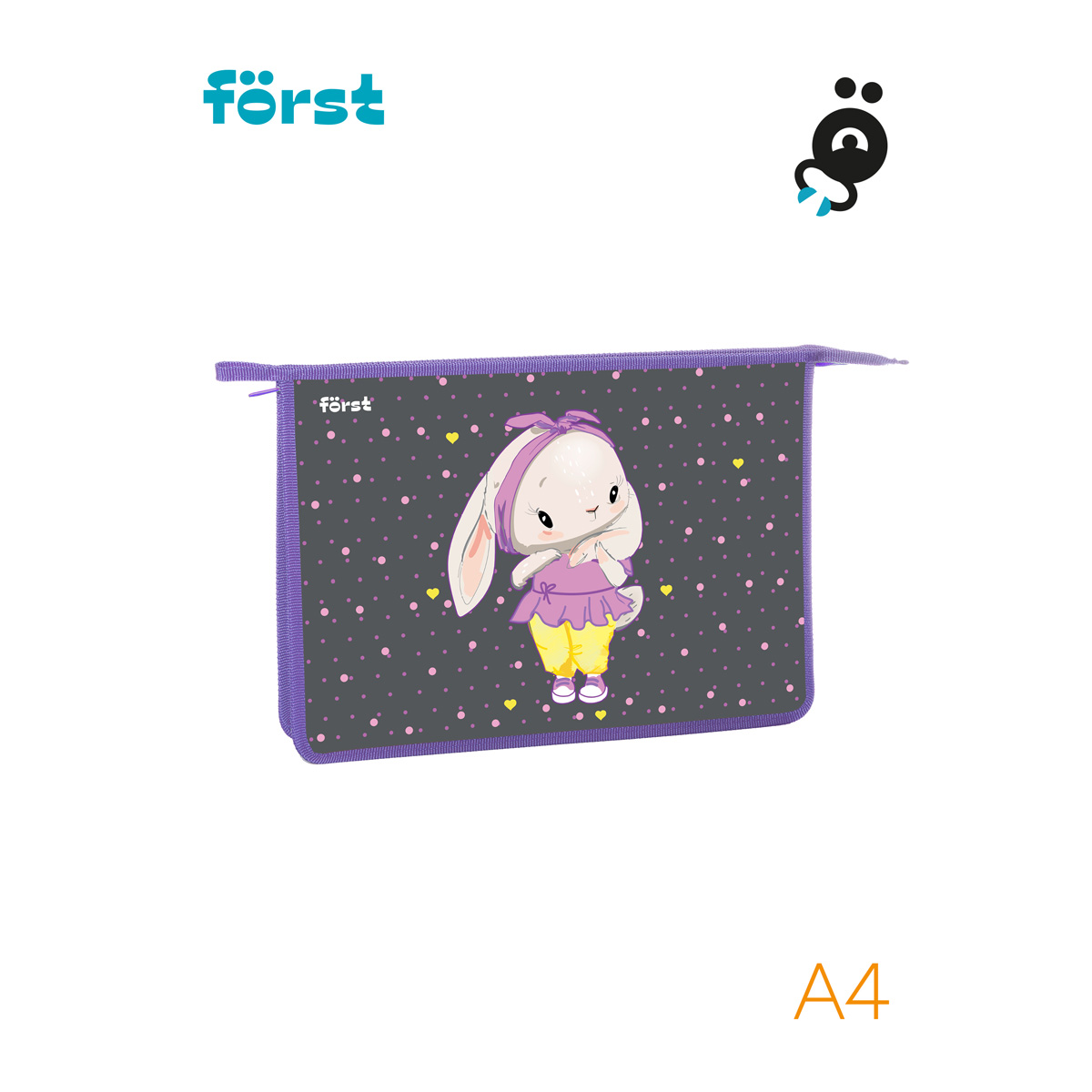 Папка для тетрадей на молнии Först Grey bunny формата А4 предназначена для хранения учебных принадлежностей. Изделие размером 340*245*40 мм имеет одно отделение. Застежка-молния сверху надежно защищает содержимое от грязи и влаги. Края папки имеют тканевую окантовку. Изготовлена из высококачественного пластика. <br/>• Формат: А4;<br/>• Материал: пластик, ткань;<br/>• Количество отделений: 1;<br/>• Тип застёжки: молния.
