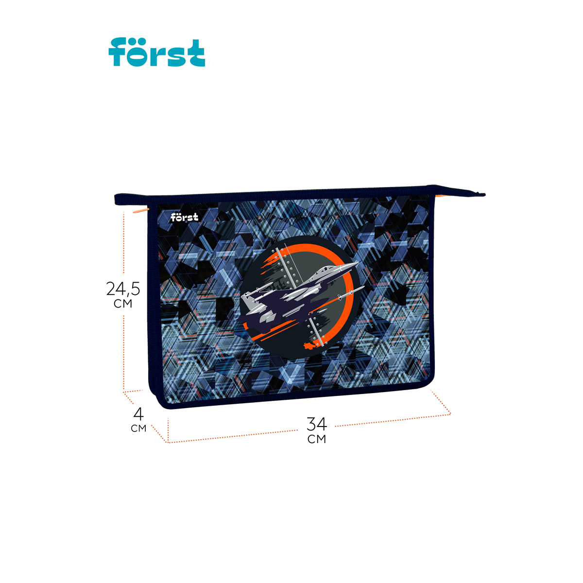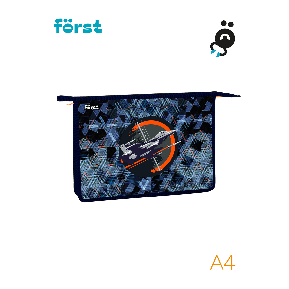Папка для тетрадей на молнии Först Orange Plane формата А4 предназначена для хранения учебных принадлежностей. Изделие размером 340*245*40 мм имеет одно отделение. Застежка-молния сверху надежно защищает содержимое от грязи и влаги. Края папки имеют тканевую окантовку. Изготовлена из высококачественного пластика. <br/>• Формат: А4;<br/>• Материал: пластик, ткань;<br/>• Количество отделений: 1;<br/>• Тип застёжки: молния.