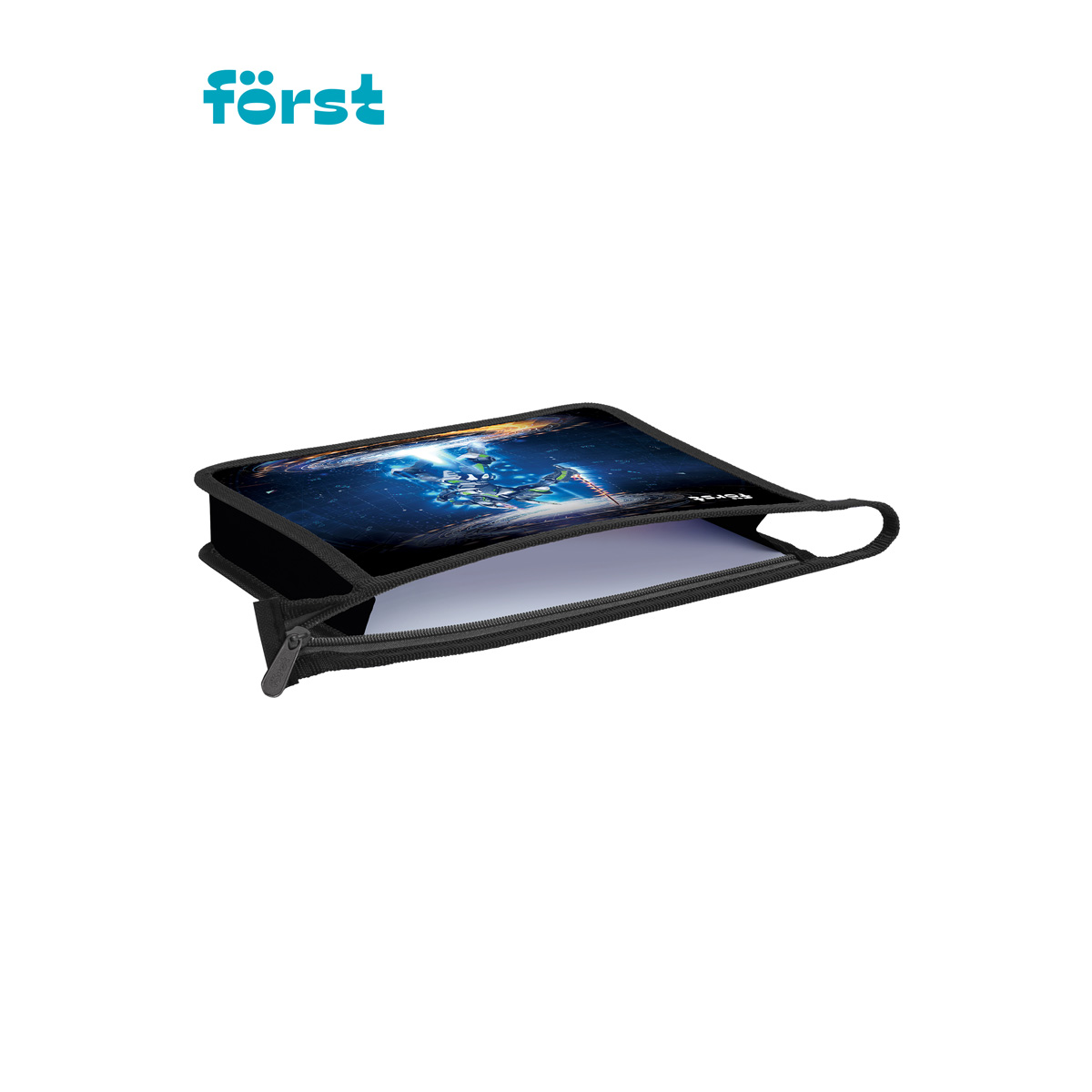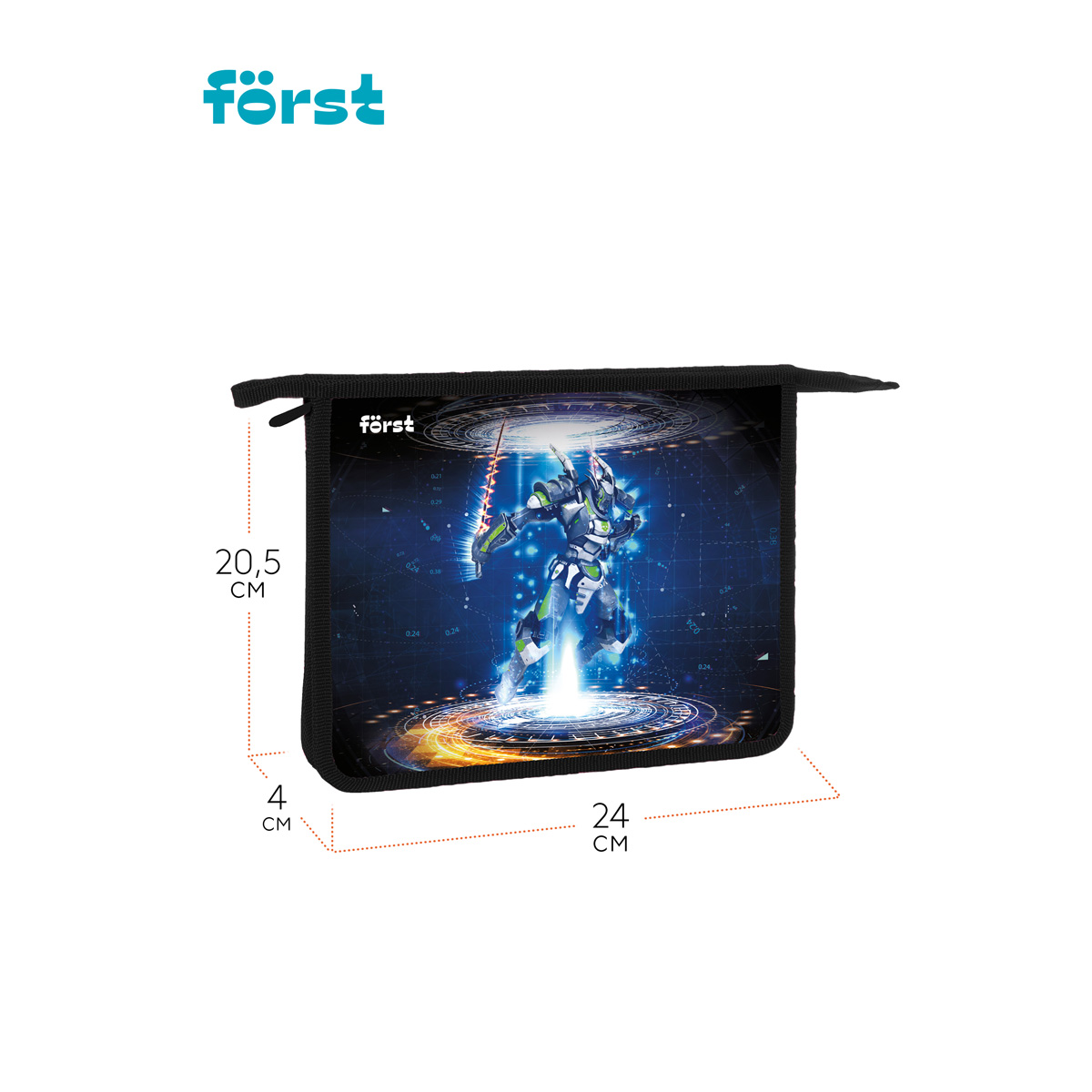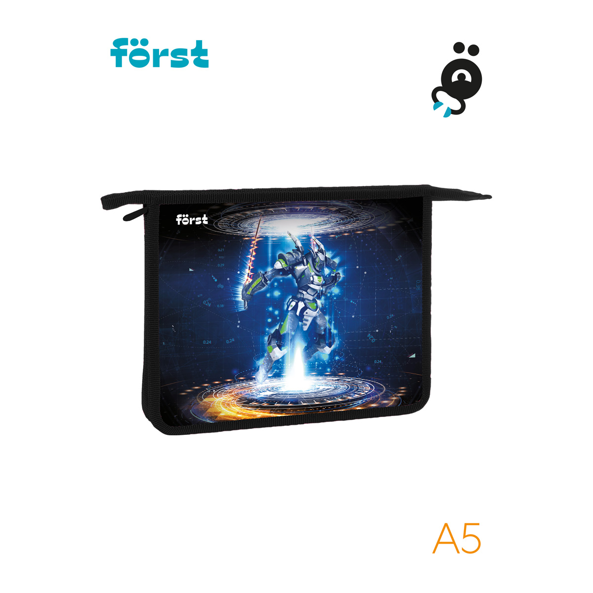 Папка для тетрадей на молнии Först Neo future формата А5 предназначена для хранения учебных принадлежностей. Изделие размером 240*205*40 мм имеет одно отделение. Застежка-молния сверху надежно защищает содержимое от грязи и влаги. Края папки имеют тканевую окантовку. Изготовлена из высококачественного пластика. <br/>• Формат: А5;<br/>• Материал: пластик, ткань;<br/>• Количество отделений: 1;<br/>• Тип застёжки: молния.
