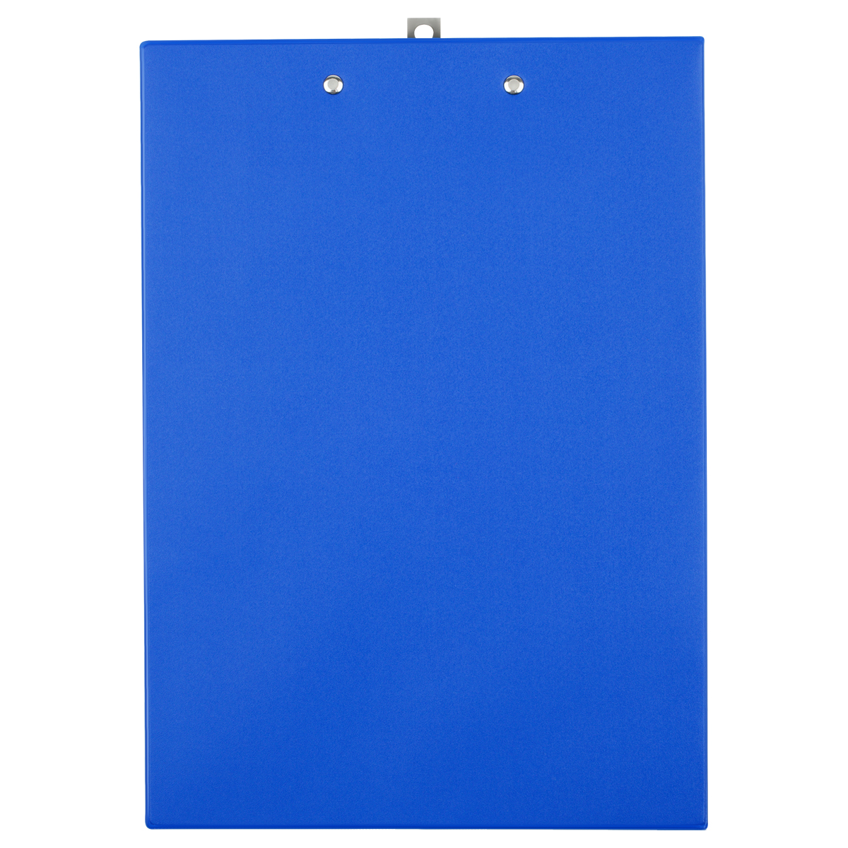 Прочный планшет с зажимом OfficeSpace формата А4 будет отличным помощником для комфортных записей на весу и ведения публичных мероприятий. Изделие размером 325*220 мм представлено в синем цвете. Изделие толщиной 200 мкм изготовлено из жёсткого износоустойчивого картона с двухсторонним покрытием из прочной ПВХ-плёнки с текстурой «песок». Металлический зажим надёжно фиксирует документы, не повреждая их.