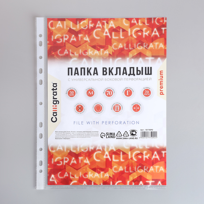 Файл-вкладыш А5, 30 мкм, Calligrata, глянцевый, горизонтальная ориентация, 100 штук