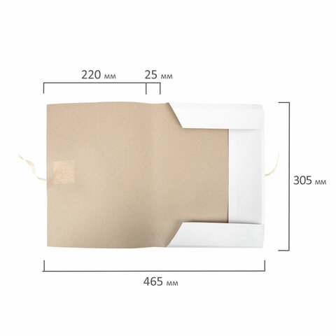 Папка стандартного формата А4 вмещает до 200 листов. Изготовлена из немелованного картона плотностью 220 г/м2. Ширина корешка составляет 25 мм. На лицевой стороне есть поля для подписывания. Поставляется в гофрокоробе.
