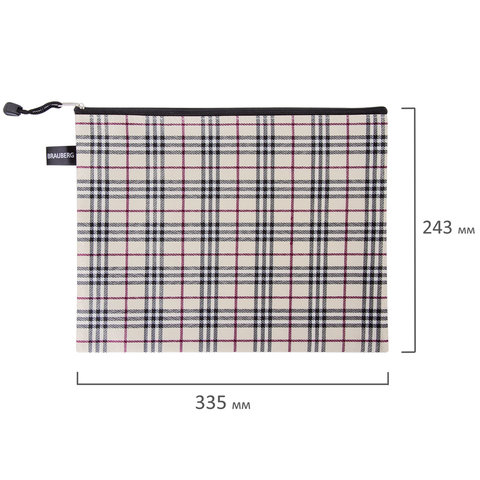 Папка-конверт на молнии BRAUBERG "Checked" идеально подойдет для хранения и транспортировки документов.