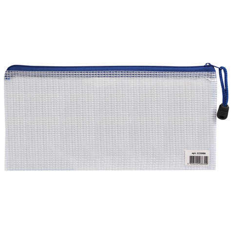 Изготовлена из прочного прозрачного пластика толщиной 220 мкм с сетчатой фактурой. Размер - 255х130 мм. Герметичная застежка-молния защищает документы от механических повреждений, а также пыли и влаги. Цвет молнии - ассорти (поставляется без возможности выбора).
