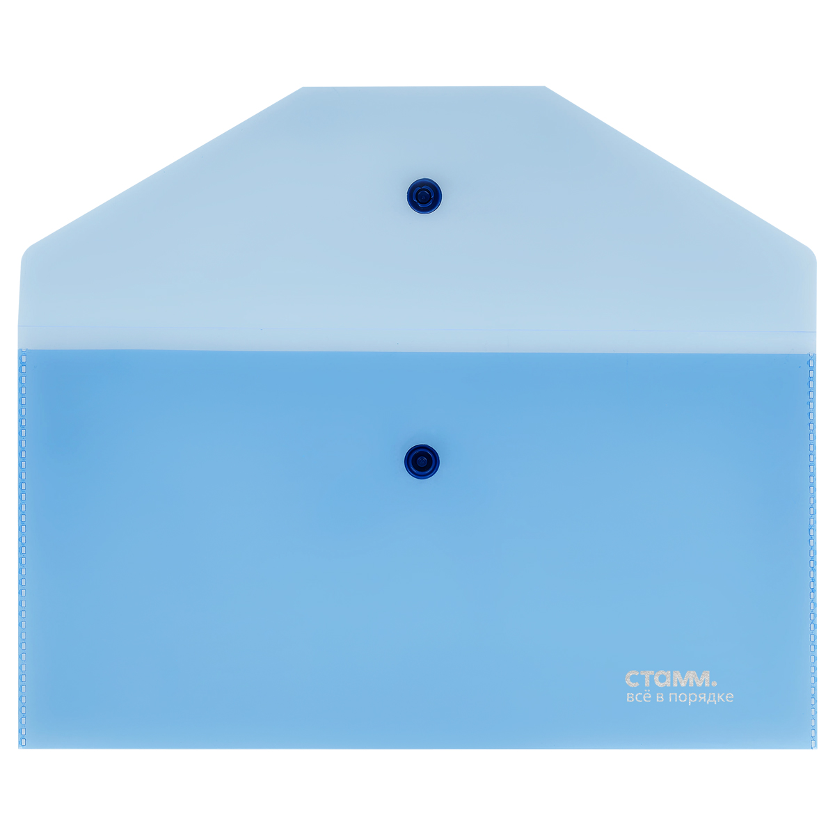 Папка-конверт на кнопке СТАММ С6, 150мкм, пластик, прозрачная, синяя