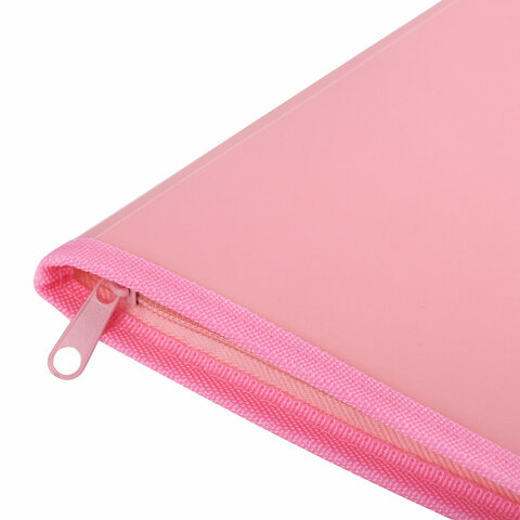 Изготовлена из прочного непрозрачного матового пластика толщиной 600 микрон. Формат А4 (330x240 мм). Надежный замок-молния защищает документы от механических повреждений, пыли и влаги. Папка представлена в красивом пастельно-персиковом цвете.