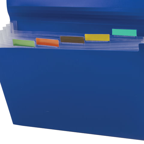 Папка формата А4 изготовлена из качественного пластика толщиной 0,5 мм с матовой фактурой и содержит 6 отделений, которые позволяют структурировать документы. Для удобства поиска нужного документа папка снабжена индексными ярлыками. Резинки, расположенные по углам, плотной закрывают папку, не позволяя содержимому выпасть и надежно защищая от влаги, пыли и прочих механических повреждений. Папка представлена в солидном синем цвете.