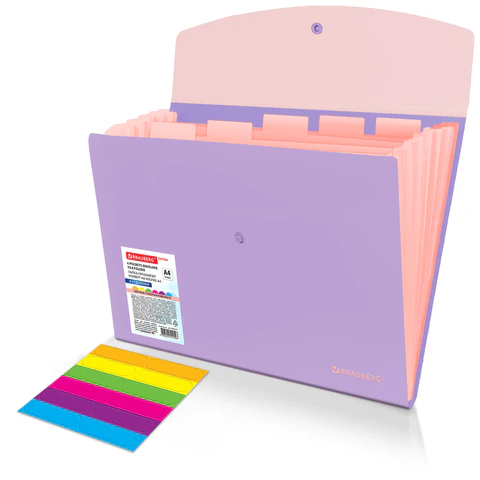 Папка-органайзер на кнопке 5 отделений, BRAUBERG "Extra", А4, лиловая с персиковым, 274098