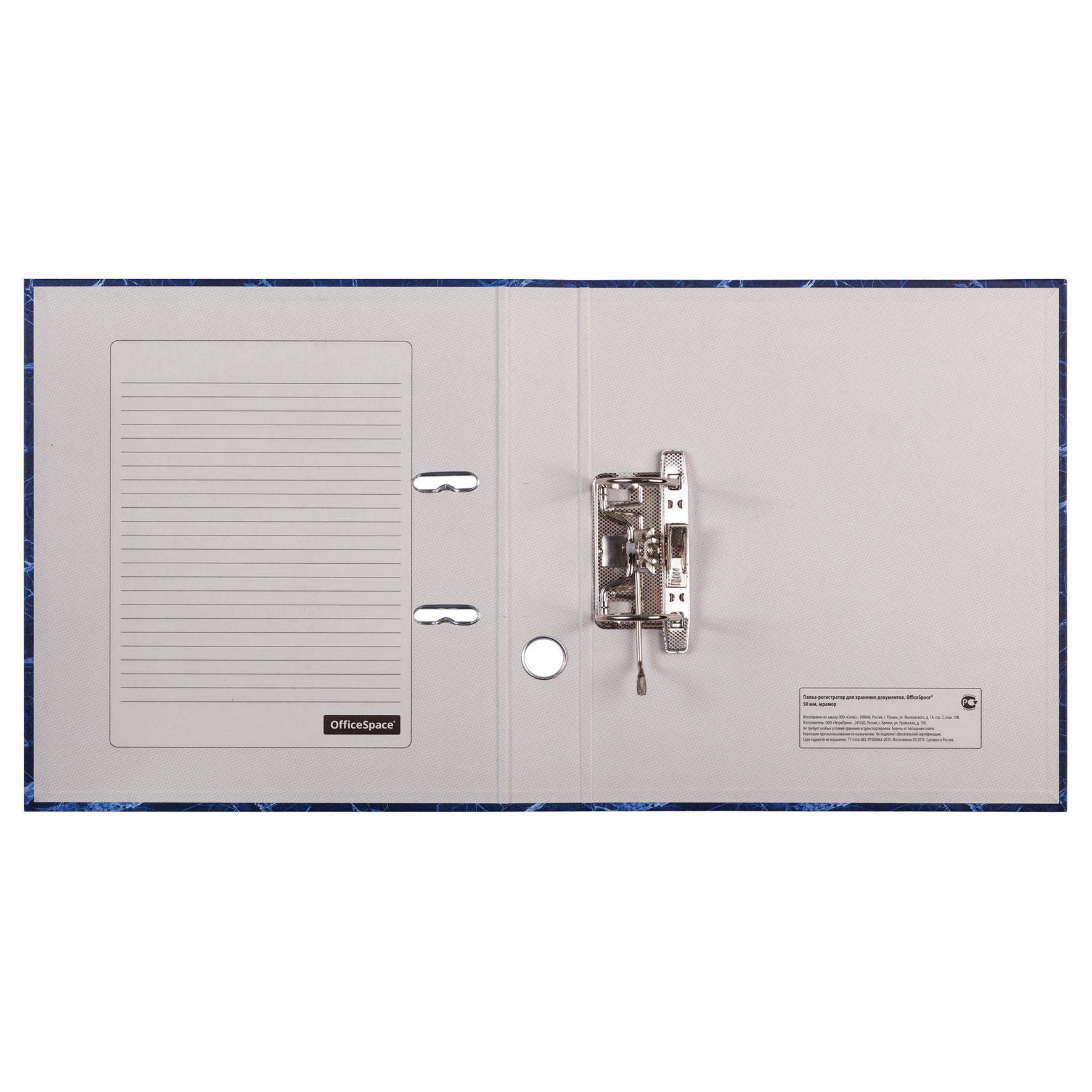 Папка-регистратор для хранения документов, металлический арочный механизм, покрытие «мрамор». Размер составляет 280*320*50мм. Формат А4. Ширина корешка 50 мм. Цвет синий. • Размер: 280*320*50мм;