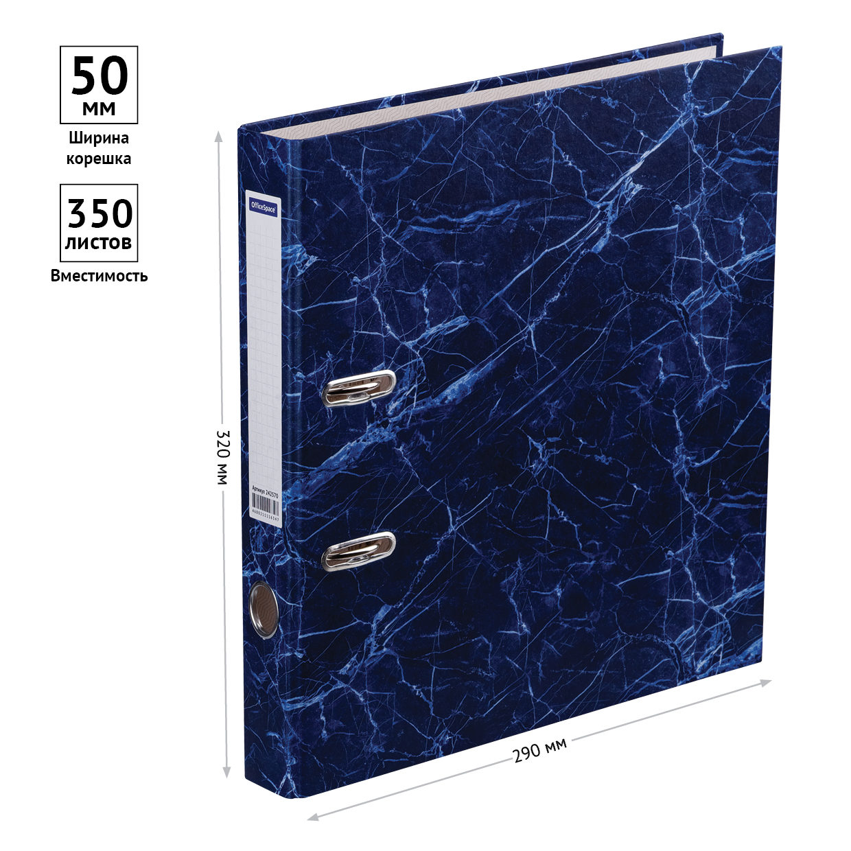 Папка-регистратор для хранения документов, металлический арочный механизм, покрытие «мрамор». Размер составляет 280*320*50мм. Формат А4. Ширина корешка 50 мм. Цвет синий. • Размер: 280*320*50мм;<br/>• Формат: А4; <br/>• Цвет: синий мрамор;<br/>• Вместимость в листах: 350шт;<br/>• Ширина корешка: 50мм.
