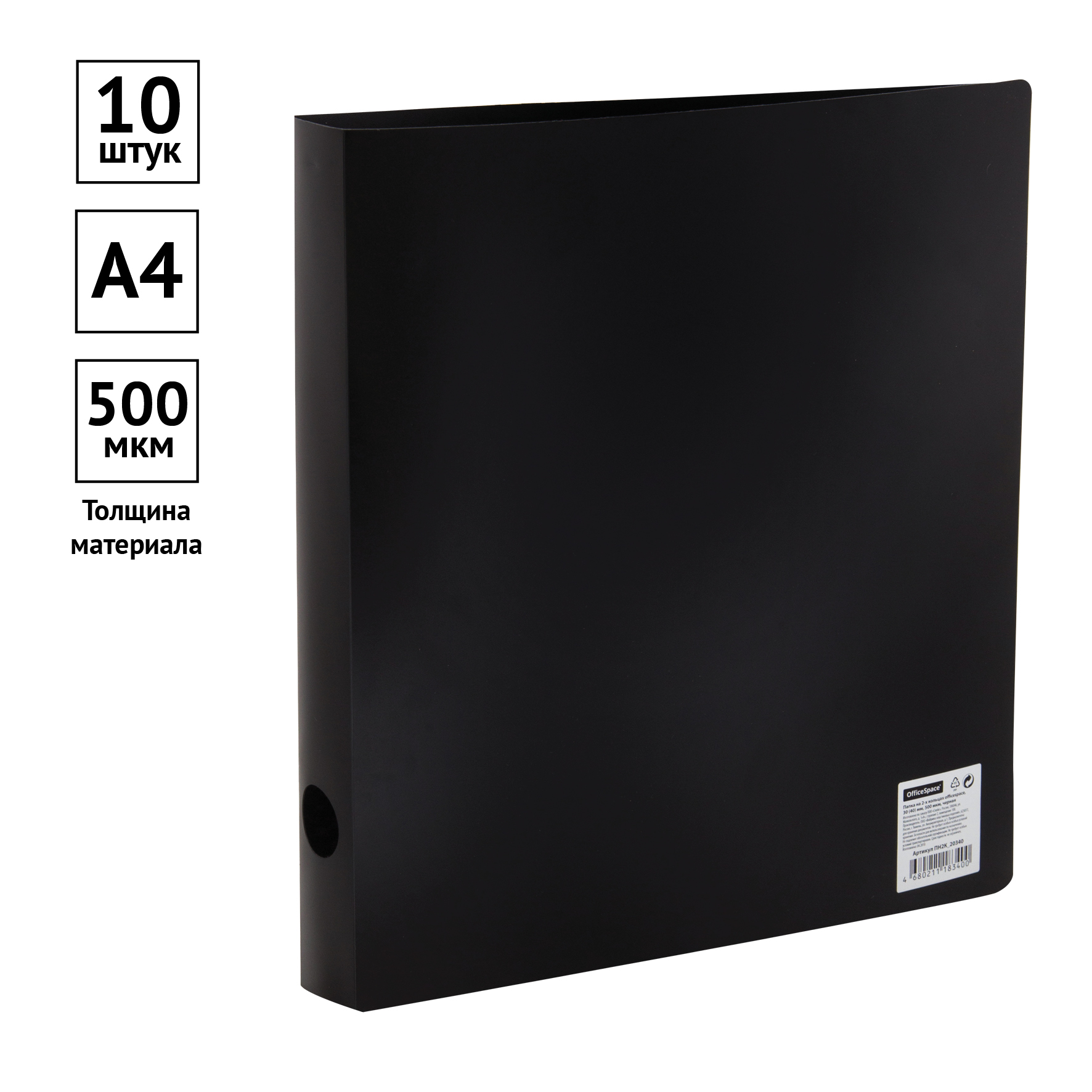 Папка на 2 кольцах OfficeSpace, 40мм, 500мкм, чёрная, предназначена для длительного или временного хранения перфорированых документов формата А4, изготовлена из плотного пластика. Размер составляет 305*250мм. Кольцевой механизм надежно держит документы. В ассортименте представлены классические офисные цвета. Допустима влажная обработка.