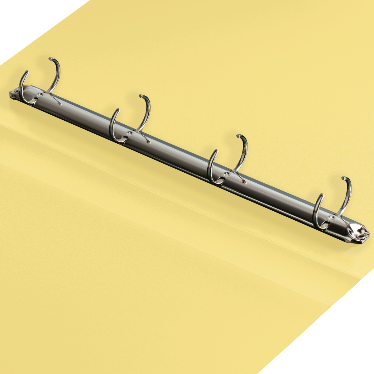 Папка на 4 кольцах «СТАММ» предназначена для хранения перфорированных документов формата А4. Цвет папки – пастельно желтая. Изготовлена из качественного полипропилена плотностью 500 мкм с текстурой «песок». Размер изделия составляет 310*250 мм. Ширина корешка 40 мм позволяет вмещать в папку до 250 листов. Кольцевой механизм, состоящий из 4 колец диаметром 25 мм, надежно держит документы. Папка упакована в индивидуальный пакет.
