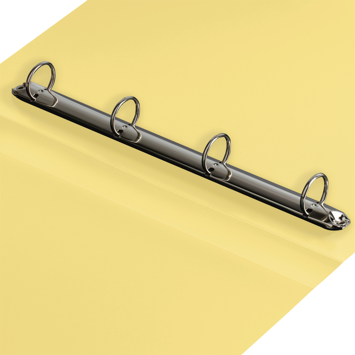 Папка на 4 кольцах «СТАММ» предназначена для хранения перфорированных документов формата А4. Цвет папки – пастельно желтая. Изготовлена из качественного полипропилена плотностью 500 мкм с текстурой «песок». Размер изделия составляет 310*250 мм. Ширина корешка 40 мм позволяет вмещать в папку до 250 листов. Кольцевой механизм, состоящий из 4 колец диаметром 25 мм, надежно держит документы. Папка упакована в индивидуальный пакет.<br/>• Размер: 310*250 мм;<br/>• Толщина материала: 500 мкм;<br/>• Формат: А4;<br/>• Цвет: желтый;<br/>• Вместимость в листах: до 250 листов;<br/>• Ширина корешка: 40 мм.