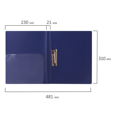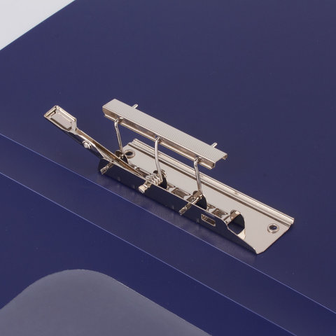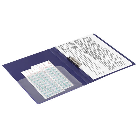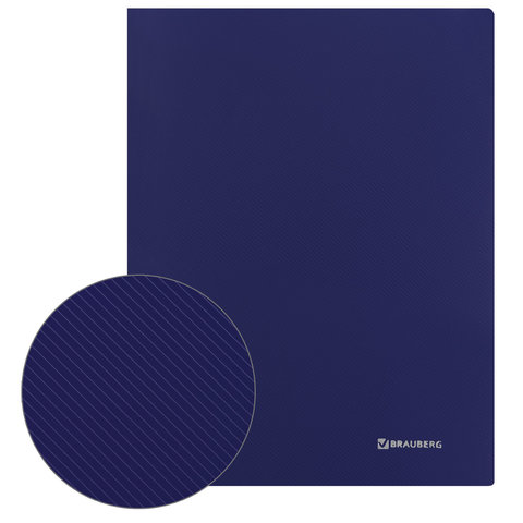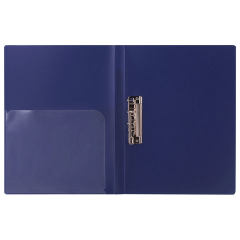 Изготовлена из высококачественного пластика толщиной 0,6 мм с оригинальной диагональной фактурой. Обеспечивает хранение до 100 листов формата А4. Снабжена боковым прижимом и прозрачным внутренним карманом. Для идентификации имеется бумажный корешок. Представлена в синем цвете. Поставляется в индивидуальной упаковке.