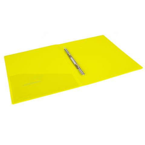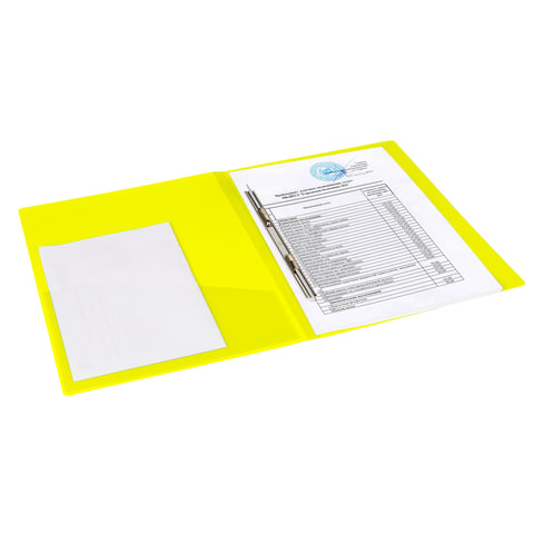 Изготовлена из высококачественного пластика желтого неонового цвета толщиной 0,7 мм с фактурой "песок". Обеспечивает хранение до 100 листов формата А4. Металлический скоросшиватель с пружинным механизмом обеспечит надежную фиксацию документов. Кроме того, папка снабжена прозрачным внутренним карманом. Для идентификации имеется бумажный корешок. Поставляется в индивидуальной упаковке.