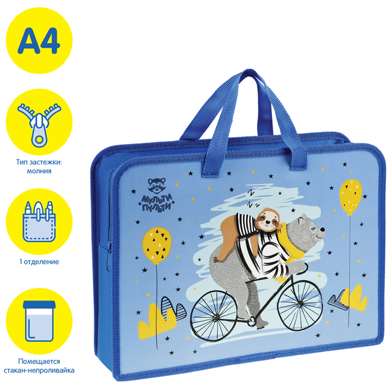 Папка с ручками «Мульти-Пульти» Best Friends формата А4 для удобного хранения тетрадей, альбомов для рисования, листов и пособий А4. Папка изготовлена из качественного пластика, который защищает содержимое папки от влаги. Удобные ручки позволяют взять брать ее с собой на занятия, в школу или детский сад.<br/><br/>Широкая боковая часть (75 мм) увеличивает вместимость папки, благодаря чему помещается стакан-непроливайка. Для детей старше 3-х лет.<br/>• Формат: А4;<br/>• Ширина папки: 75 мм.
