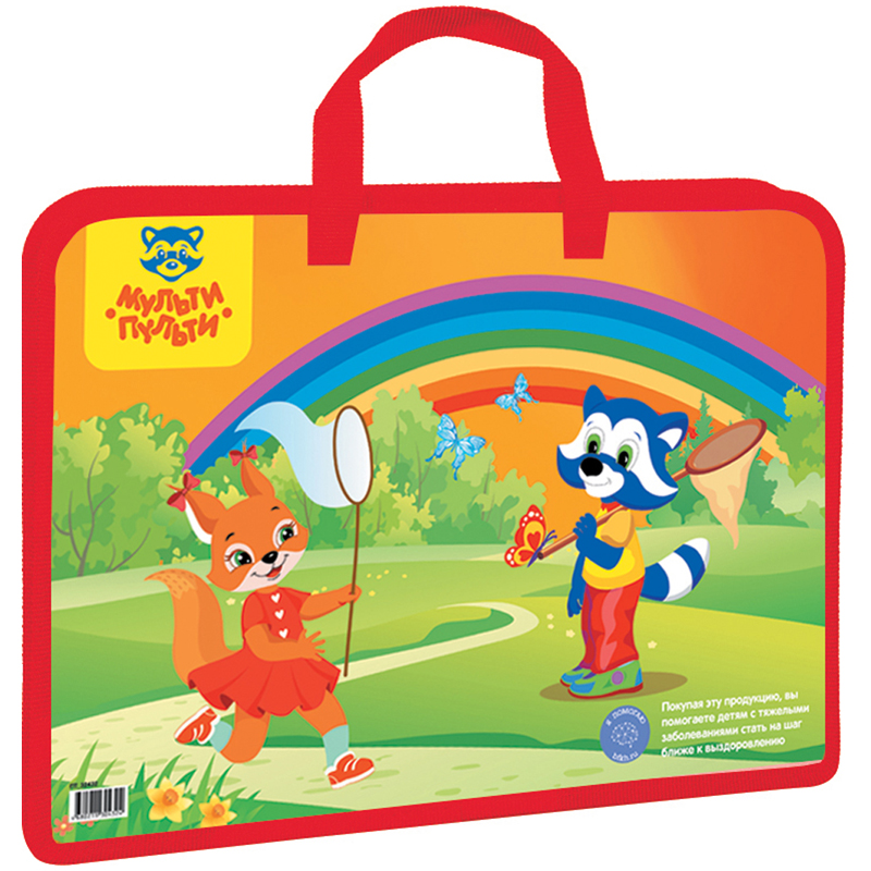 Папка с ручками «Мульти-Пульти» серия «Для девочек» формата А4 для удобного хранения листов А4, тетрадей, альбомов для рисования. Папка изготовлена из качественного пластика, который защищает содержимое папки от влаги. Удобные ручки позволяют взять ее в школу, детский сад. Широкая боковая часть (40 мм) увеличивает вместимость папки, благодаря чему помещается стакан-непроливайка. Застежка-молния надежно защищает содержимое. Для детей старше 3-х лет.<br/>• Формат: А4;<br/>• Цвет: красный с рисунком;<br/>• Ширина папки: 40 мм.