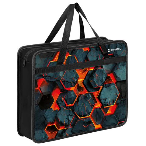 Папка на молнии с ручками BRAUBERG А4, 1 отделение, пластик, 80 мм, "Lava blocks", 274496