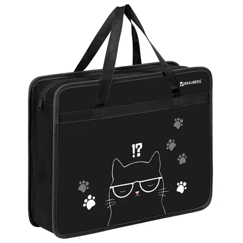 Папка на молнии с ручками BRAUBERG А4, 1 отделение, пластик, 80 мм, "Big black cat", 274495