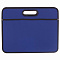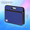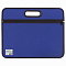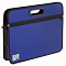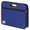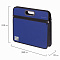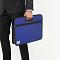 Ручки, находящиеся в корпусе папки, и края окантованы тканью, придавая презентабельный вид изделию. Имеет одно отделение. Материал - жесткий пластик толщиной 0,5 мм. Застегивается на молнию. Есть внешний карман. Формат папки А4+ (390х315х70 мм). Выполнена в синем цвете с фактурой "бисер".