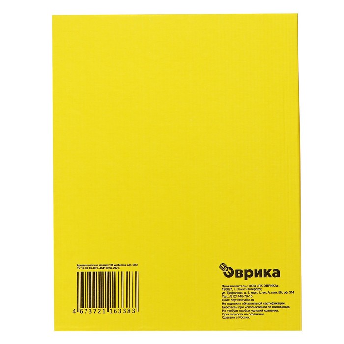 Папка архивная на резинках Calligrata, микрогофрокартон, 75 мм, до 700 л, жёлтый