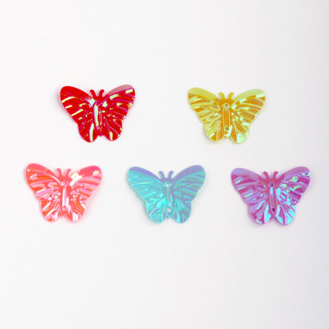 Изготовлены из высококачественного пластика. В наборе представлены 5 оттенков. Пайетки имеют форму бабочек. Оснащены отверстиями для нити в центре. Предназначены для детей от 3 лет. Диаметр - 15 мм. Вес - 20 г. Поставляются в пакете с европодвесом.