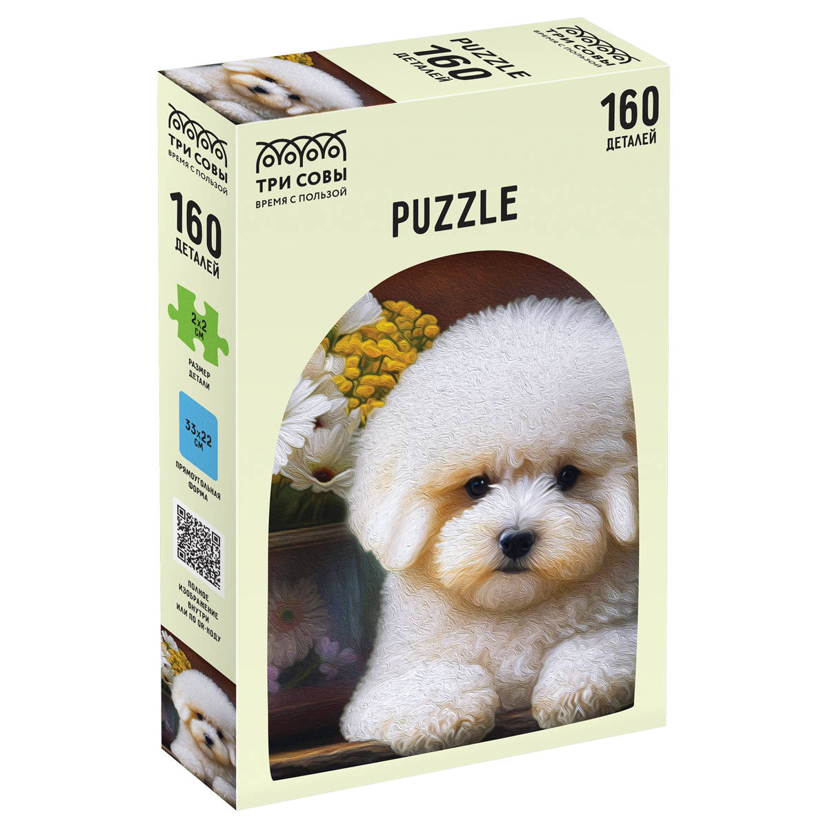 Пазл «ТРИ СОВЫ» «Пушистый бишон» из 160 элементов станет отличным способом весело провести вечер. Картинка имеет горизонтальную ориентацию, в собранном виде размер составляет 33*22 см. Пазлы упакованы в прочную красивую коробку и станут отличным подарком! Изготовлены в России.<br/>Пазлы «ТРИ СОВЫ» – это большой выбор иллюстраций, яркие и четкие цвета и высокий уровень полиграфии. Пазлы изготовлены из плотного специализированного картона, который обеспечивает высокую сцепку деталей. Процесс сборки головоломки будет увлекателен для всей семьи и поможет провести время интересно и с пользой – занятие способствует развитию образного и логического мышления, памяти и мелкой моторики. <br/>• Количество элементов: 160;<br/>• Размер в собранном виде: 33*22 см;<br/>• Ориентация: горизонтальная.