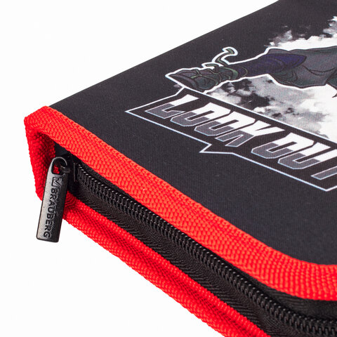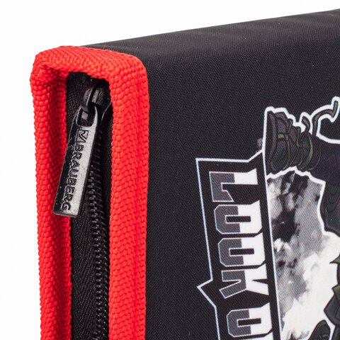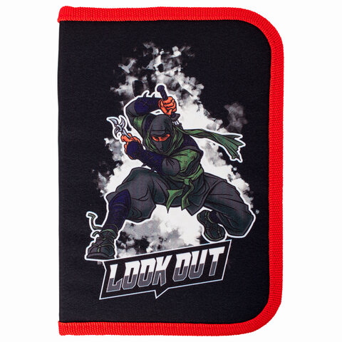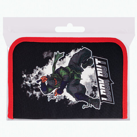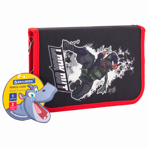 Тканевый пенал BRAUBERG "Ninja" стандартного размера с одним отделением и двумя откидными планками. Удобная молния с трех сторон с металлическим бегунком, прочные резинки для предметов. Внутри пенала - цветная печать. Вмещает до 33 предметов.