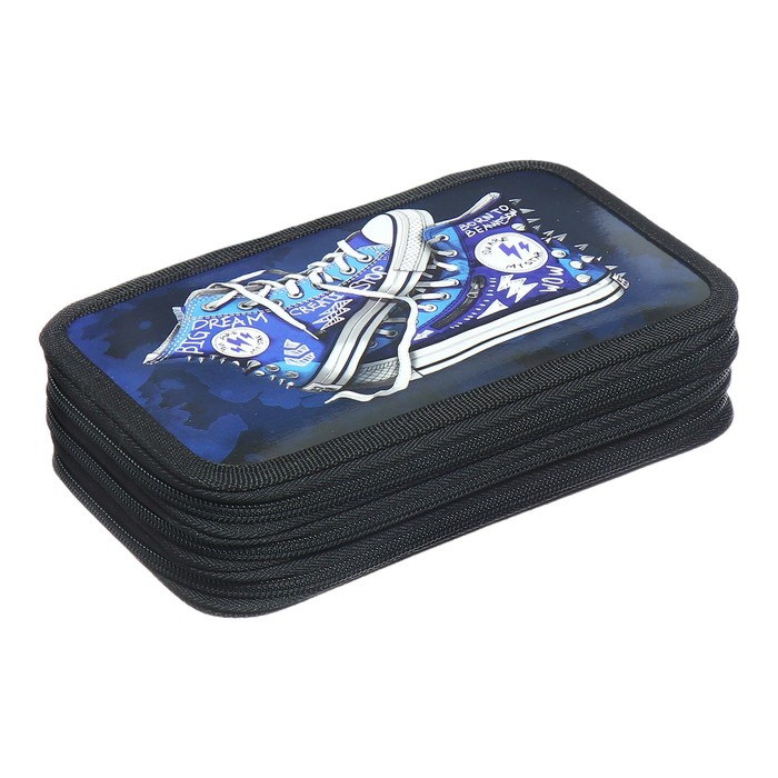 Пенал 1 секция, 140 х 200 х 40 мм, 2 откидные планки, тканевый, ПКТ 09-20 "Скейт граффити"