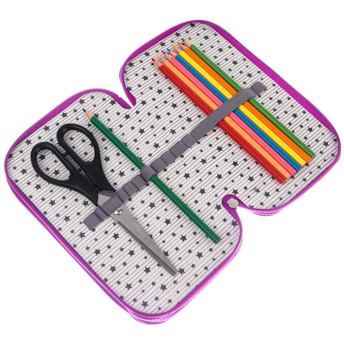 Пенал 1 секция, 140 х 200 х 40 мм, 2 откидные планки, тканевый, ПКТ 09-20 "Зефирная единорожка"