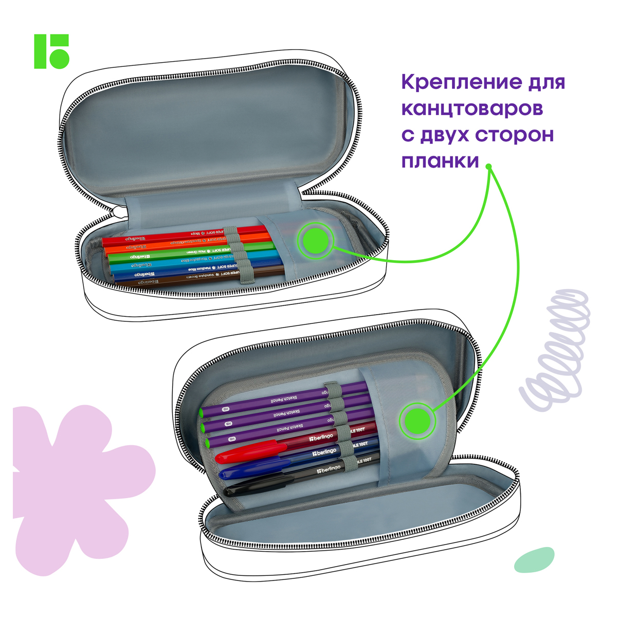 С двух сторон откидной планки расположено 12 креплений-резиночек для канцтоваров, благодаря которым внутри пенала легко поддерживать порядок. Изделие упаковано в индивидуальный пакет. Поставляется без наполнения.