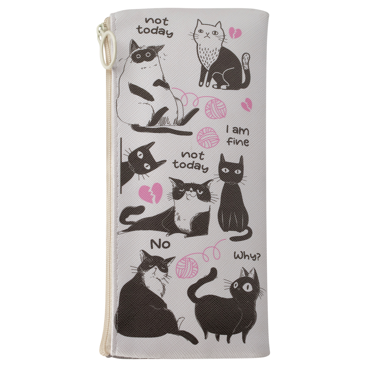 Пенал мягкий BRAUBERG, 2 отделения, полиэстер, "Long cat", светло-серый, 21х9х6 см, 274612