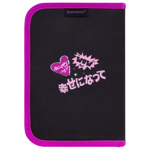 Тканевый пенал BRAUBERG стандартного размера с одним отделением и одной откидной планкой. Удобная молния с трех сторон с металлическим бегунком, прочные резинки для предметов. Пенал с наполнением включает 24 предмета.