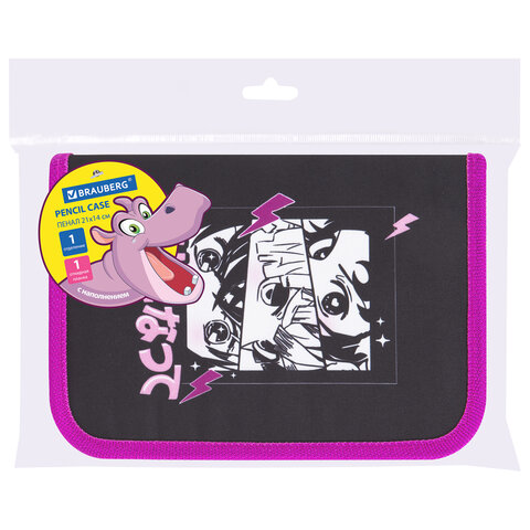 Пенал BRAUBERG с наполнением, 1 отделение, 1 откидная планка, 24 предмета, 21х14 см, Night catcher, 273530