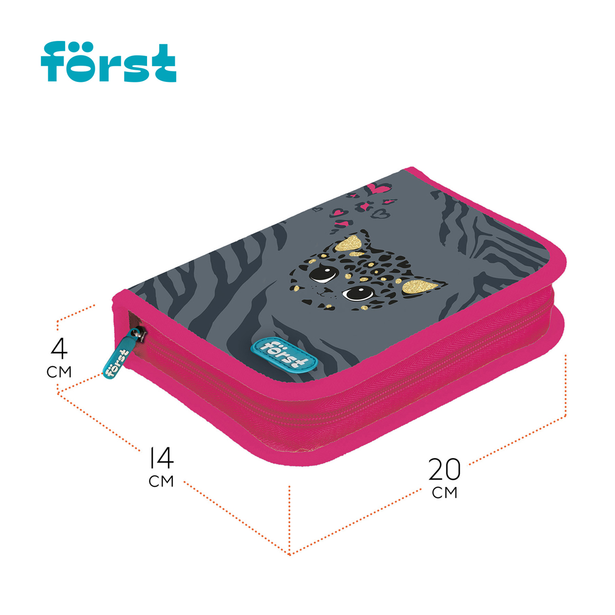 Каркасный пенал Först помогает школьнику хранить канцелярские принадлежности в одном месте. Изделие размером 200*140*40 мм не занимает много места в рюкзаке. В одно отделение помещается 25 предметов. За счёт креплений-резиночек для канцтоваров внутри пенала легко поддерживать порядок. Одна откидная планка увеличивает вместимость изделия и позволяет всегда держать расписание уроков перед глазами. Благодаря крупному резиновому бегунку ребёнку удобно открывать пенал на молнии.