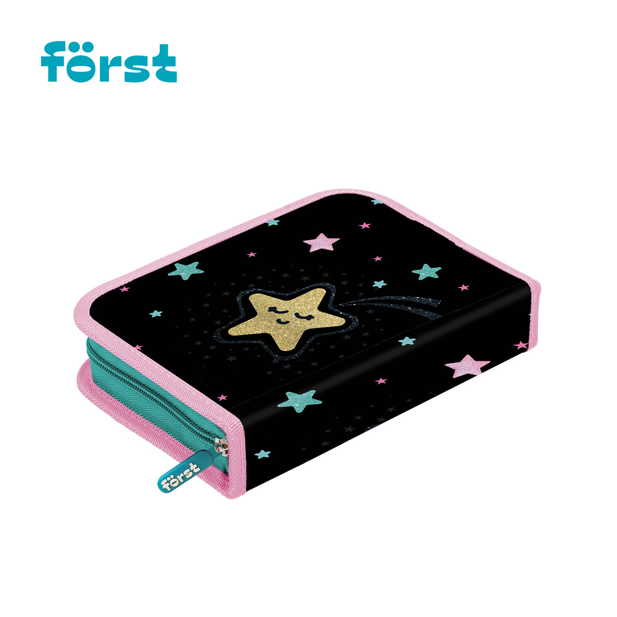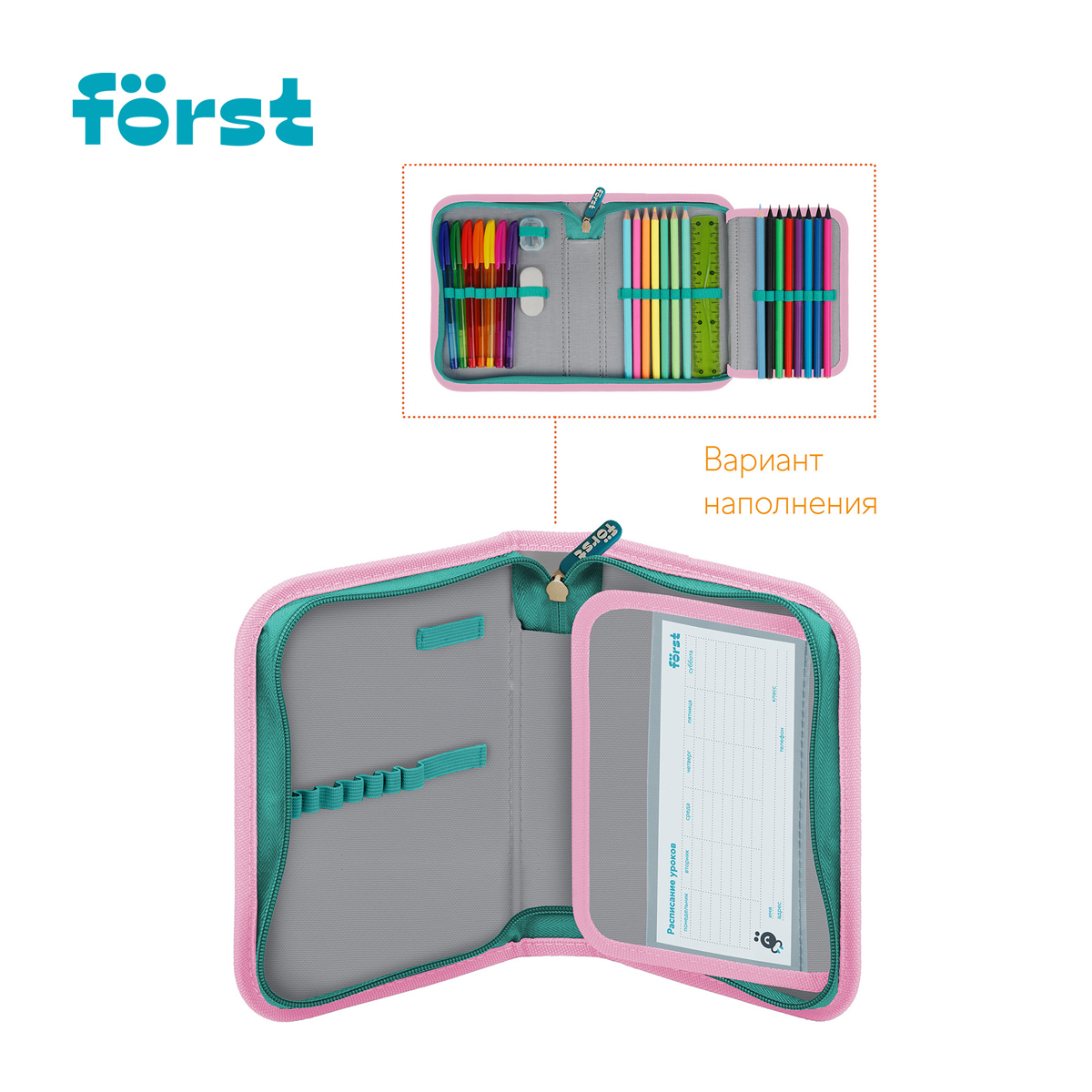 Каркасный пенал Först помогает школьнику хранить канцелярские принадлежности в одном месте. Изделие размером 200*140*40 мм не занимает много места в рюкзаке. В одно отделение помещается 25 предметов. За счёт креплений-резиночек для канцтоваров внутри пенала легко поддерживать порядок. Одна откидная планка увеличивает вместимость изделия и позволяет всегда держать расписание уроков перед глазами. Благодаря крупному резиновому бегунку ребёнку удобно открывать пенал на молнии. <br/>Лицевая поверхность сделана из износостойкого полиэстера с принтом, а внутренняя – из текстурного ПВХ. Пенал упакован в индивидуальный пакет с ярким тэгом. Поставляется без наполнения.