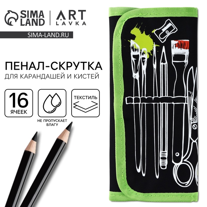 Пенал для кистей и карандашей текстиль, 16 предметов «Рисунок»