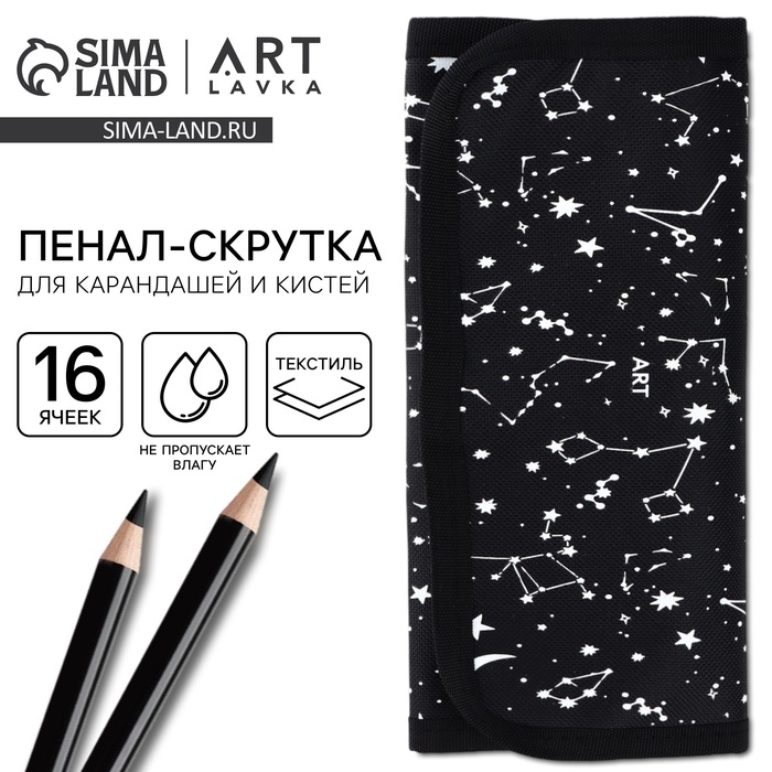 Пенал для кистей и карандашей текстиль, 16 предметов «Космос»