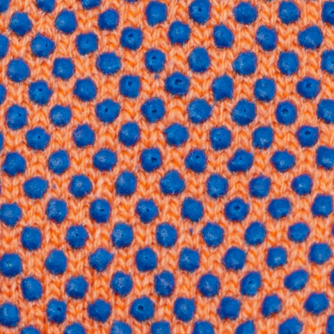 Цвет основы – оранжевый, ПВХ-нанесение – точки синего цвета, 10 класс вязки.