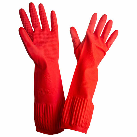 Длинные хозяйственные перчатки из натурального латекса - незаменимый товар для всех, кто заботится о чистоте и порядке в своем доме. Они сочетают в себе прочность, удобство, комфорт и безопасность, обеспечивая защиту кожи при выполнении различных задач. Удлиненная форма перчаток позволяет комфортно работать даже с длинными предметами, а рифленая поверхность ладони и пальцев обеспечивает отличное сцепление с поверхностью.