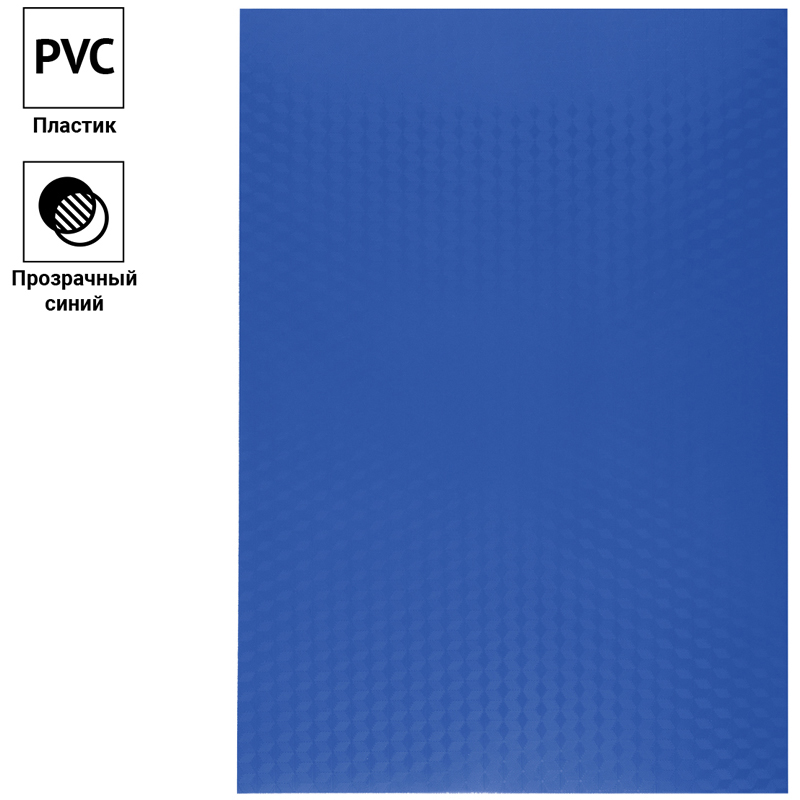 Обложка для переплета предназначена для оформления документов. Выполнена из прозрачного пластика синего цвета с фактурным тиснением "Кристалл". Идеально подходит как для переплета на пластиковую, так и на металлическую пружины.