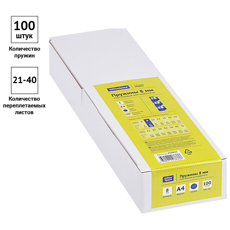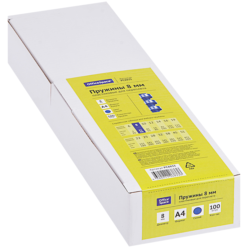 Пластиковые пружины OfficeSpace белого цвета диаметром 8мм предназначены для переплета документов. Легко выдерживают многократное раскрытие при необходимости добавить или удалить листы из готовой брошюры. Рекомендуемый объем брошюры при использовании данного диаметра пружины: 21-40 листов.