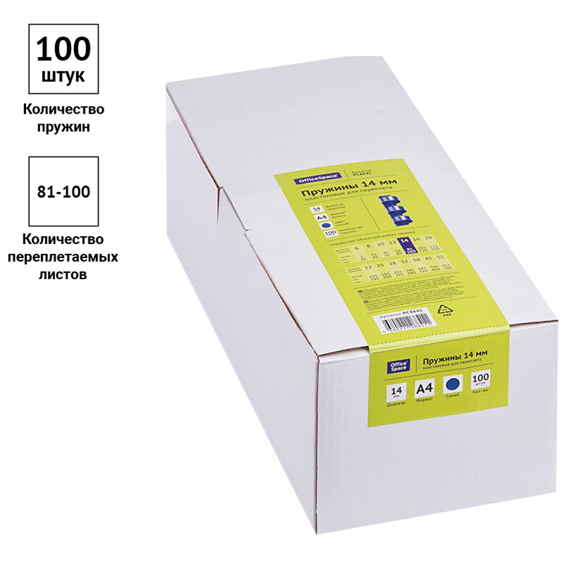Пластиковые пружины OfficeSpace белого цвета диаметром 14мм предназначены для переплета документов. Легко выдерживают многократное раскрытие при необходимости добавить или удалить листы из готовой брошюры. Рекомендуемый объем брошюры при использовании данного диаметра пружины: 81-100 листов.